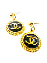 REPURPOSED ROUND BLACK/GOLD CHARM EARRINGS