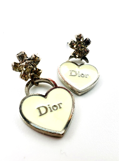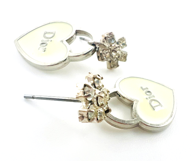 Earrings constructed from vintage costume jewelry earrings and repurposed charm. Charm is white with silver trim. Charm is very petite, smaller than a dime. Total earring length is .75”.